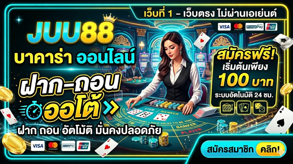 juu88 บาคาร่า ออนไลน์ ฝากถอนออโต้ เป็นระบบคาสิโนออนไลน์ที่เน้นความสะดวกและรวดเร็วในการใช้งาน โดยเฉพาะระบบธุรกรรมทางการเงินที่ถูกพัฒนาให้เป็นแบบอัตโนมัติทั้งหมด ผู้เล่นสามารถฝากเงินและถอนเงินได้โดยไม่ต้องรอเจ้าหน้าที่ ทำให้การเข้าเล่นเกมเป็นไปอย่างต่อเนื่อง
